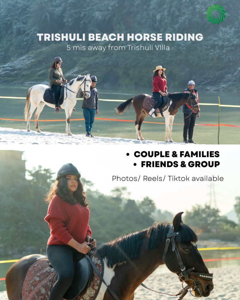 Imagine riding a horse along the Trishuli River beach, feeling the fresh river breeze and listening to the gentle sound of flowing water. Beach horse riding offers an exciting yet calming experience, making it ideal for first-time riders, families, and couples looking to create unforgettable moments.